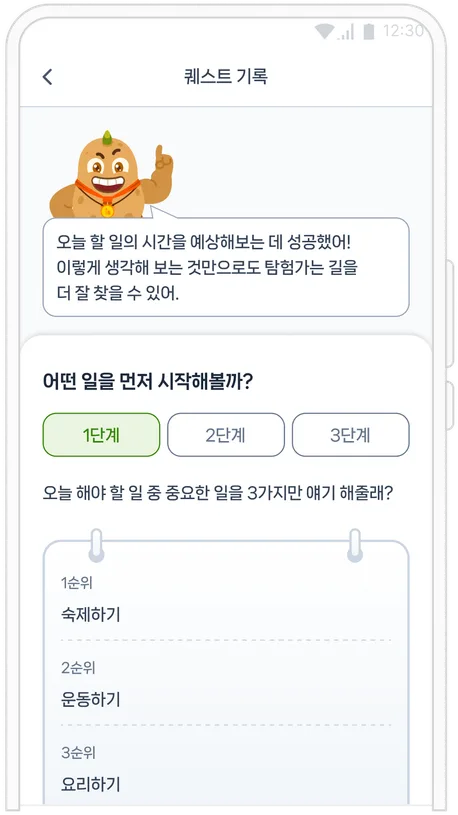 퀘스트 수행 피드백 및 감정 리포트 제공