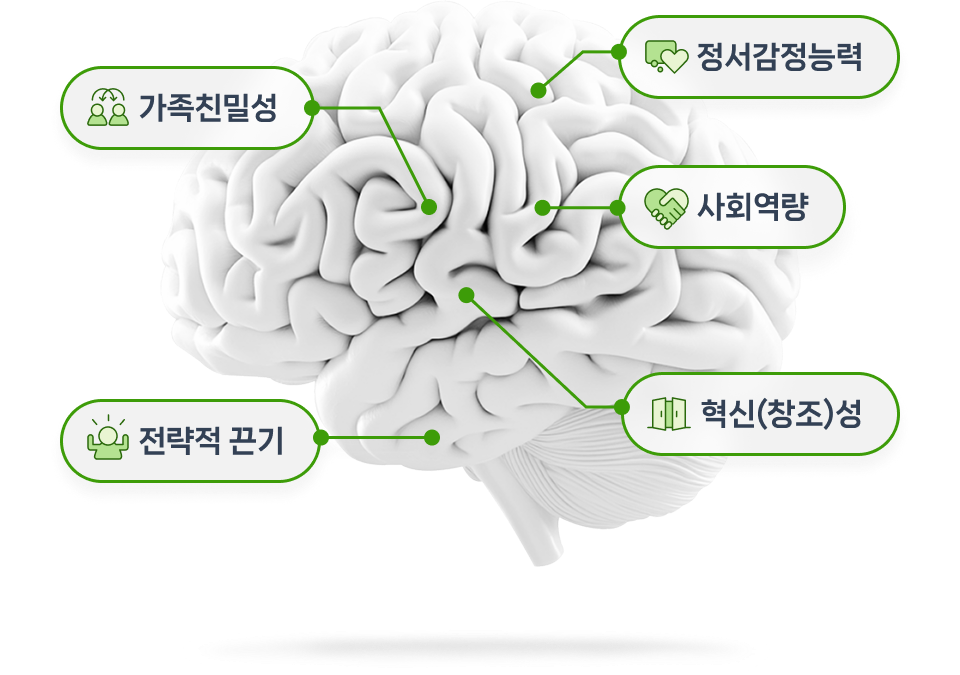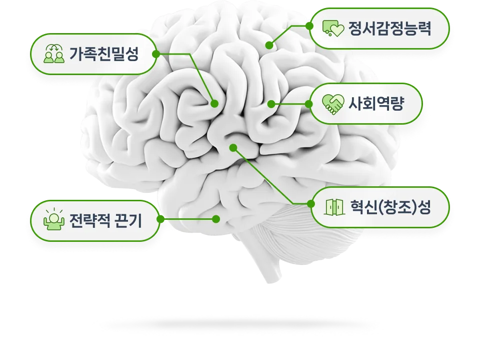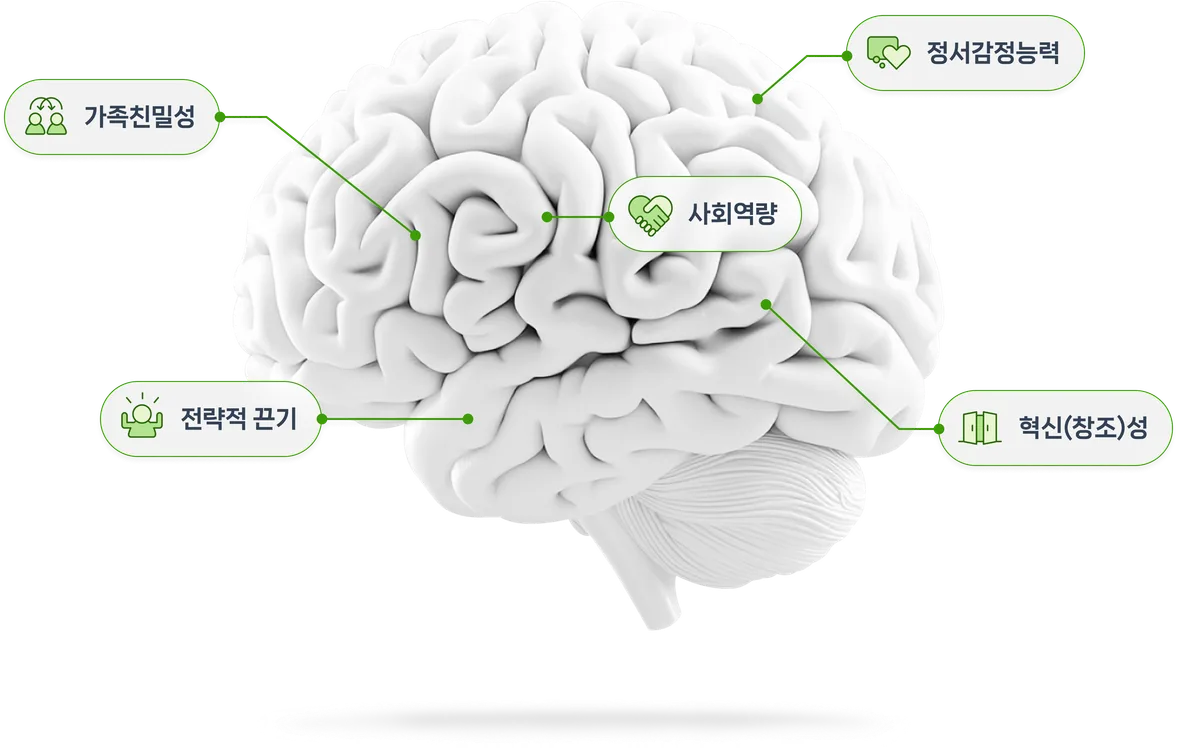 소리마인드 연구팀이 5개의 주요 역량 요소를 척도로 만든 지수로, 아이를 정서적으로 건강하게 만들 수 있는 마음의 근력을 의미합니다. 인지행동개선을 통한 PQ의 향상은 곧 탄탄한 멘탈의 형성으로 이어집니다.