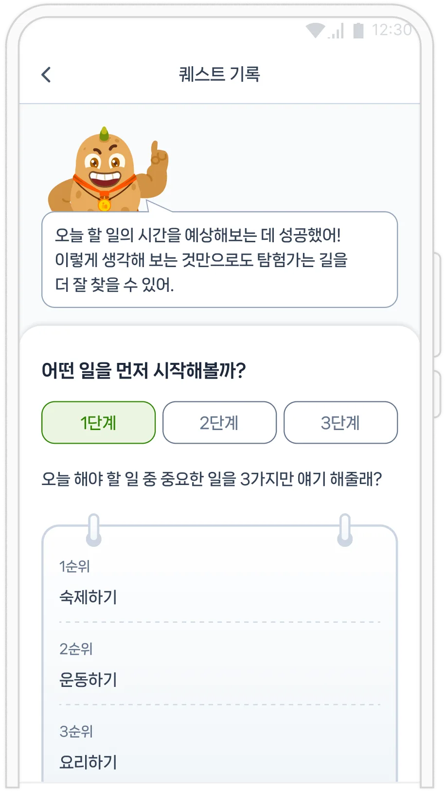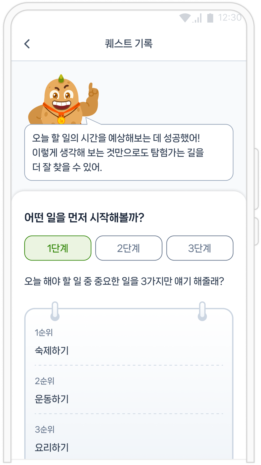 퀘스트 수행 피드백 및 감정 리포트 제공